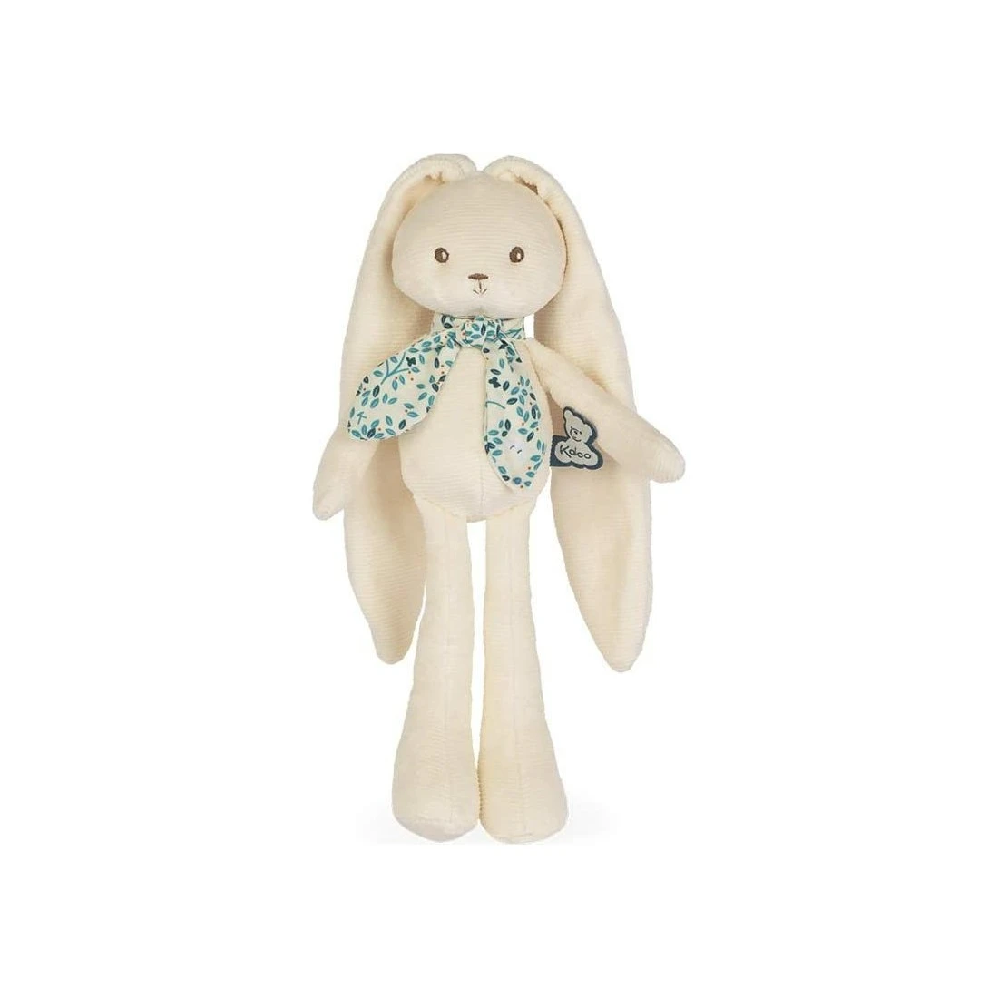 Pour avoir l’air plus distinguĂ©, ce joli doudou lapin blanc crème est habillĂ© d’une Ă©charpe assortie. Il porte Ă©galement la signature Kaloo brodĂ©e joliment sur une de ses pattes. Avec son style très moderne quel que soit la dĂ©coration que papa et maman ont choisi.