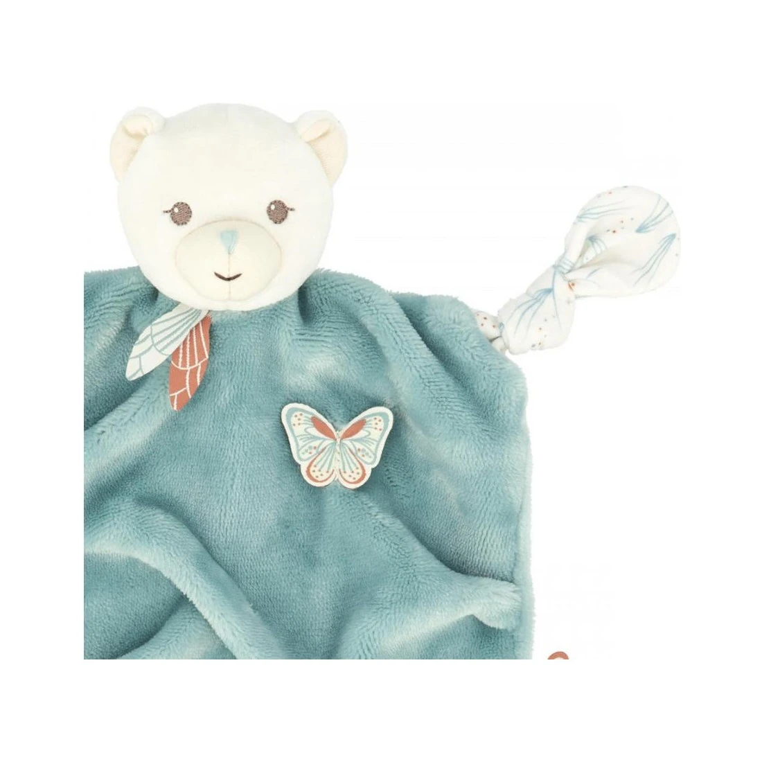 Le petit minois de l’ourson et les motifs féériques imprimĂ©s de papillons font de ce un partenaire bienveillant pour bĂ©bĂ©. Il arbore Ă©galement de petites plumes au niveau de son cou et un papillon en relief brodĂ©, comme posĂ© sur son cĹ“ur. D’une intense douceur, le corps de ce doudou 4 nĹ“uds a de nombreux plis qu’on ne se lasse pas de sentir glisser sous ses doigts.