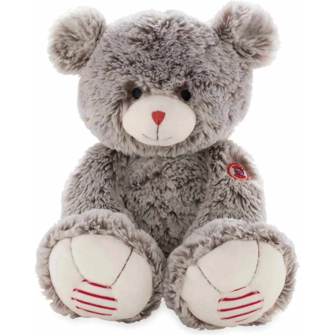 Une de tendresse dont bébé deviendra inséparable. Cette belle peluche de la collection , représente un ours au pelage gris avec de petites rondes et un minuscule nez rouge.