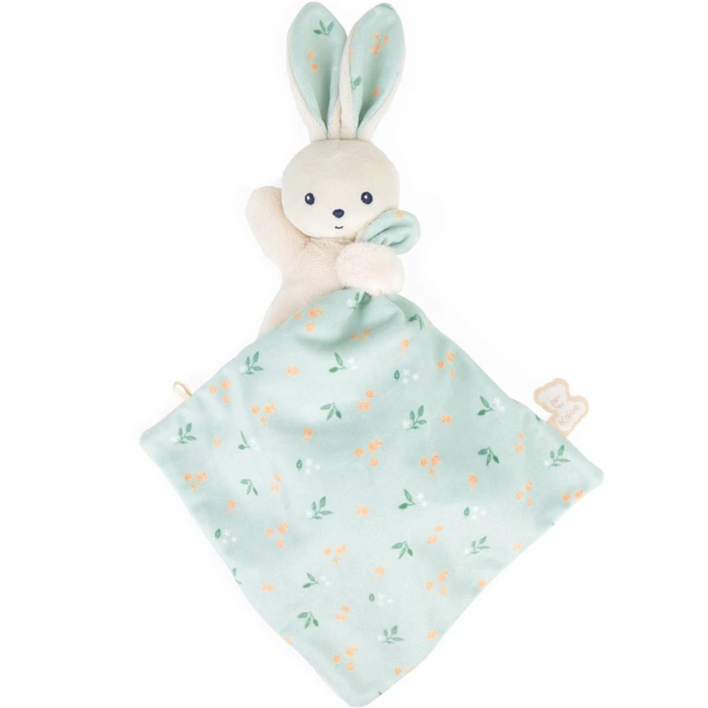 Doudou carré douceur plat lapin bouquet d’agrumes de la marque Kaloo. Votre enfant adorera câliner au quotidien ce doudou tout doux et moelleux. Ce doudou est facilement attrapable par les petites mains de votre bébé grâce à la lange. Ce produit fabriqué à partir de bouteilles en plastique en fait un produit éco-responsable.