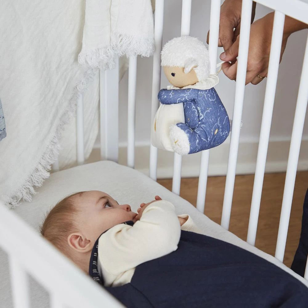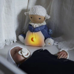 Veilleuse peluche mouton de la marque Kaloo. Cette peluche veilleuse est conçue pour pouvoir s’emporter partout et aider votre enfant à être apaiser et à s’endormir peut importe où il se trouve. Pour allumer et éteindre le boîtier, il vous suffira simplement de le toucher. Le boîtier est rechargeable avec un câble USB qui est fourni.