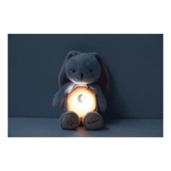 Le mignon petit lapin blanc est un compagnon très rassurant. La journée il adore les câlins. Pour cela, sont ultra doux et votre bébé aimera se blottir contre lui. La nuit sa poche qui accueille un s’éclaire avec une jolie lune pour apporter une lumière rassurante et douce dans la chambre de votre enfant. Le mignon lapin sert à la fois de en diffusant une douce mélodie propice à l’endormissement.