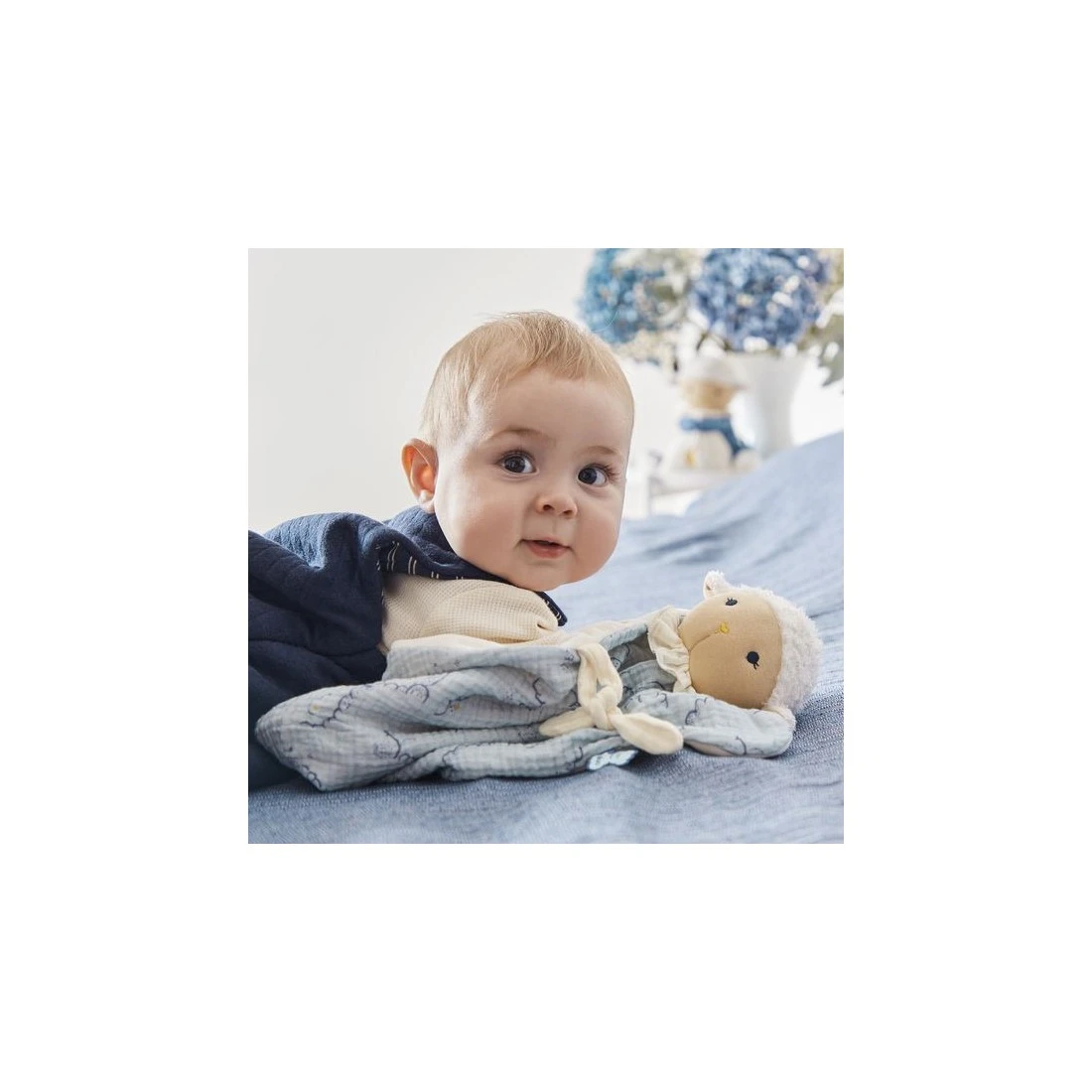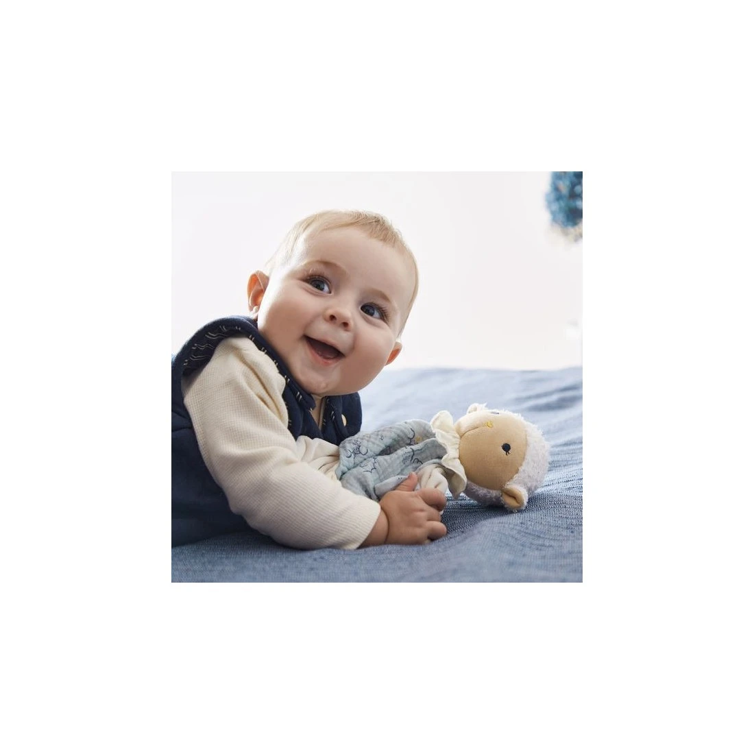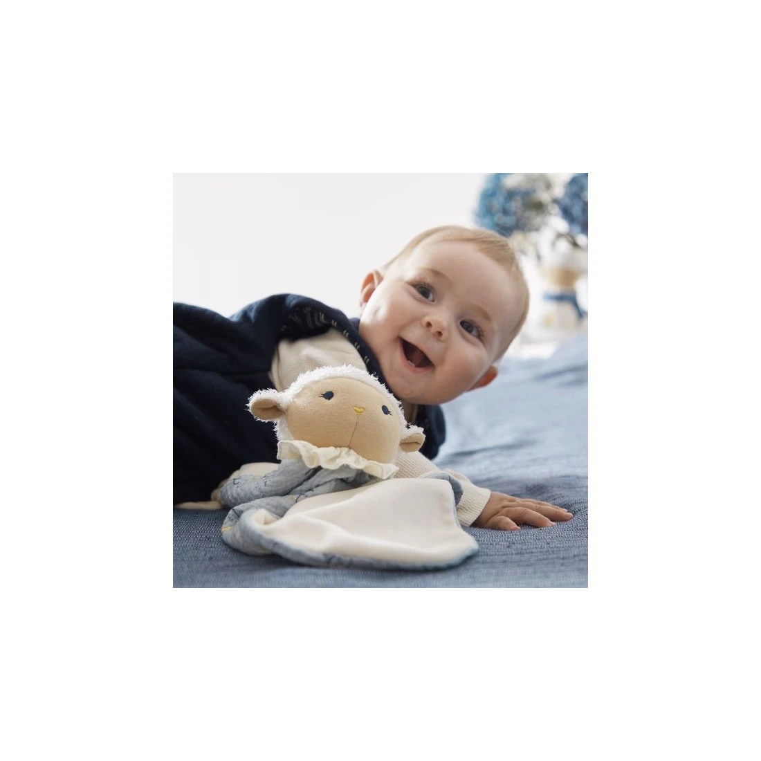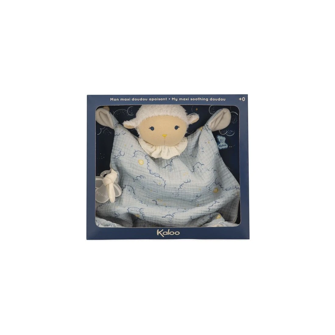 Présenté dans sa jolie boîte, ce doudou bleu . Adapté aux petits ce maxi doudou mouton en coton bio fait partie de la gamme de Kaloo : dédiés au sommeil de bébé, les articles de cette collection accompagnent bébé dans la mise en place de ses premiers rituels du coucher.