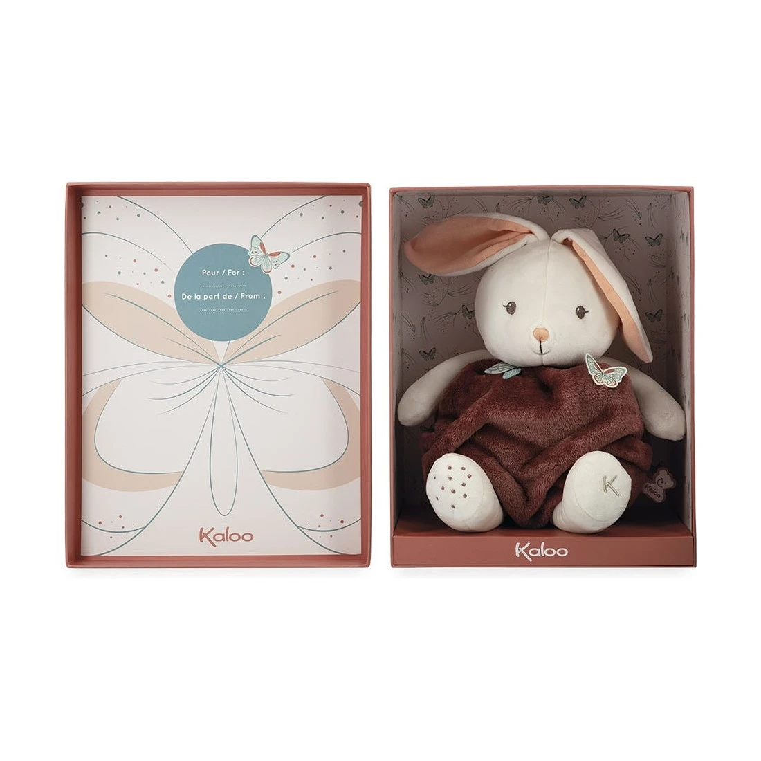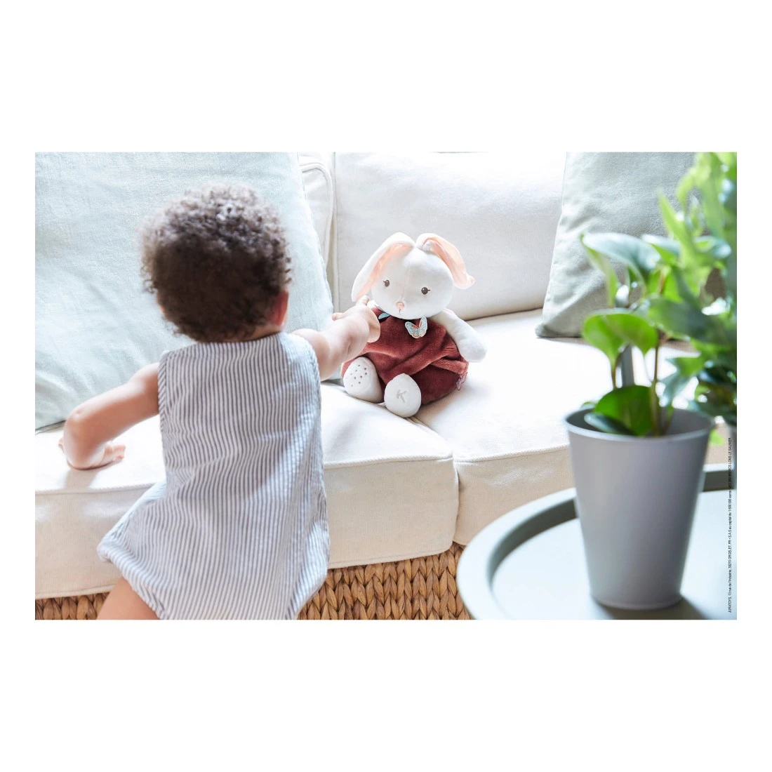 Un lapin en peluche d’une immense douceur ! Mesurant 30 cm et arborant une multitude de dĂ©tails féériques, ce lapin est adaptĂ© Ă bĂ©bĂ© dès la naissance. La fourrure de flanelle et le micro-velours font de cette peluche un Ă©crin de douceur et de chaleur. BĂ©bĂ© peut saisir son nouvel ami par les bras, les jambes, et surtout par les oreilles ! En plus de son expression amicale, ce lapin a un ventre intensĂ©ment doux et dotĂ© de nombreux plis Ă saisir : les tout-petits adorent plonger leurs petits doigts et câliner leur nouvel ami. De couleur Cannelle, cette est parĂ©e de dĂ©tails toujours plus dĂ©licats : un papillon tout doux accrochĂ© sur son bras et des rubans avec des ailes de papillon au cou lui donnent un air sympathique et raffinĂ©. Lavable en machine, cette peluche est composĂ©e de rembourrage en polyester recyclĂ© certifiĂ© Grs. PrĂ©sentĂ© dans une adorable boĂ®te cadeau assortie, ce lapin en peluche est un cadeau de naissance poĂ©tique et une vĂ©ritable bulle d’amour. Vous pouvez personnaliser votre prĂ©sent grâce Ă l’espace disponible sous le couvercle du coffret.